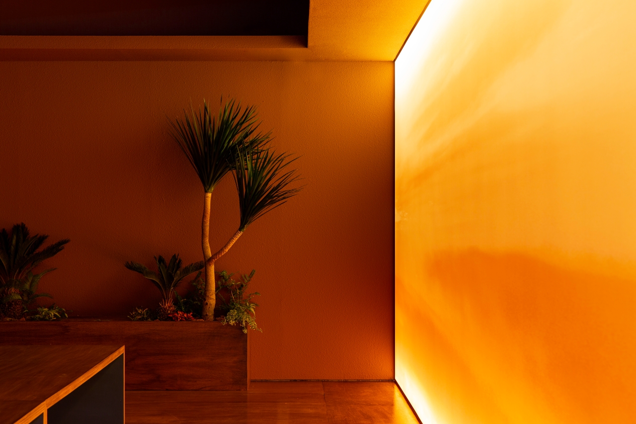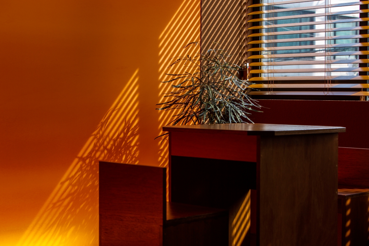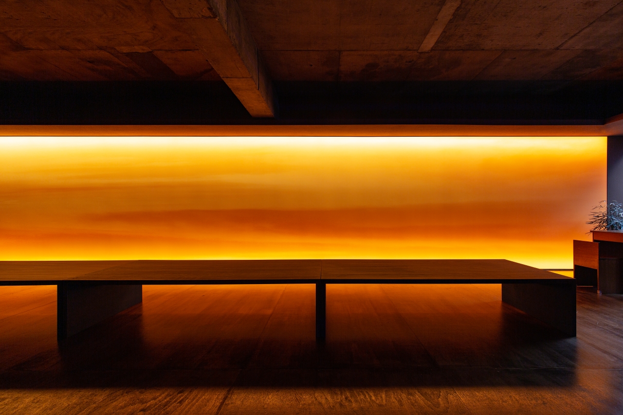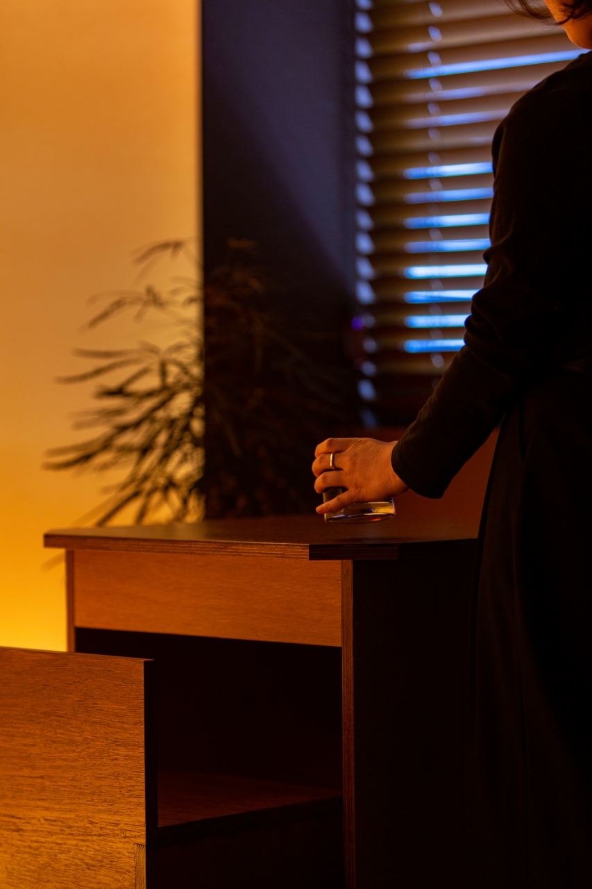 공간은 단순하고 정직합니다. 넓게 트인 홀을 중심으로, 한쪽 벽면 전체를 감싸는 ‘노을 벽’이 있습니다. 이 벽은 하루의 색을 담는 캔버스처럼 시간에 따라 다른 분위기를 만들어냅니다. 낮에는 부드러운 햇살이 머물고, 저녁이 되면 온 공간이 푸른빛과 붉은빛이 섞인 그라데이션으로 물듭니다. 벽면의 조명과 그림자, 그리고 은은한 음악은 손님 각자의 감정에 맞춰 조용히 배경이 되어줍니다.