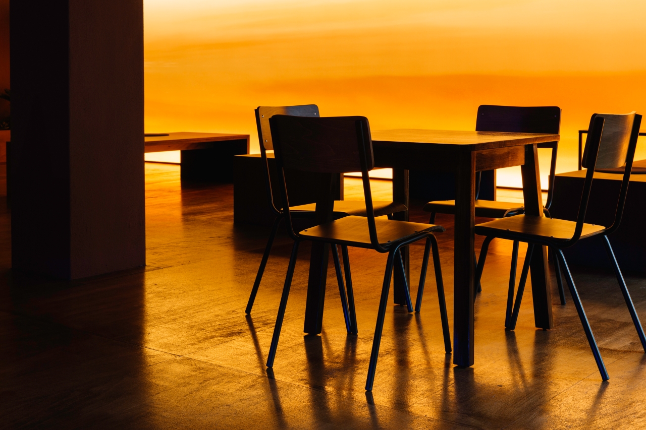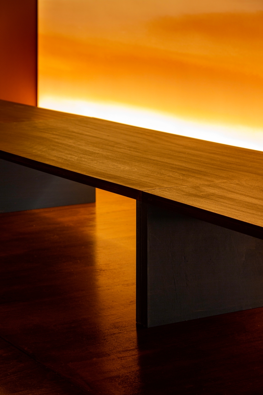 유리창 너머로 서서히 붉게 번지는 하늘, 그 앞에 가지런히 놓인 나무 의자들은 노을을 바라보기에 가장 따뜻한 재료로 선택되었습니다. 앉았을 때의 온기, 손끝에 닿는 질감, 나무 특유의 냄새까지— 모든 요소가 자연스럽게 위로를 전하도록 디자인되었습니다.